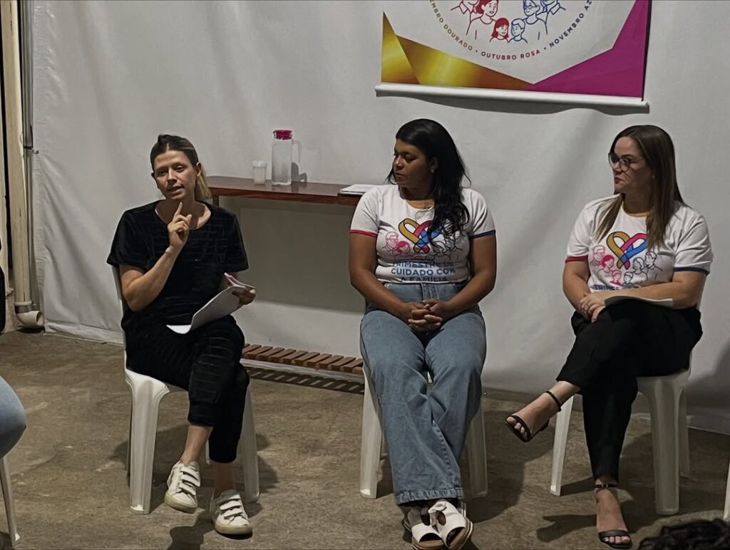 A atividade contou com participações muito especiais: Eliane Pádua, psicóloga; Michele Baliza, enfermeira; e Michele, mãe da Ana Luiza, nossa assistida da Renascer.